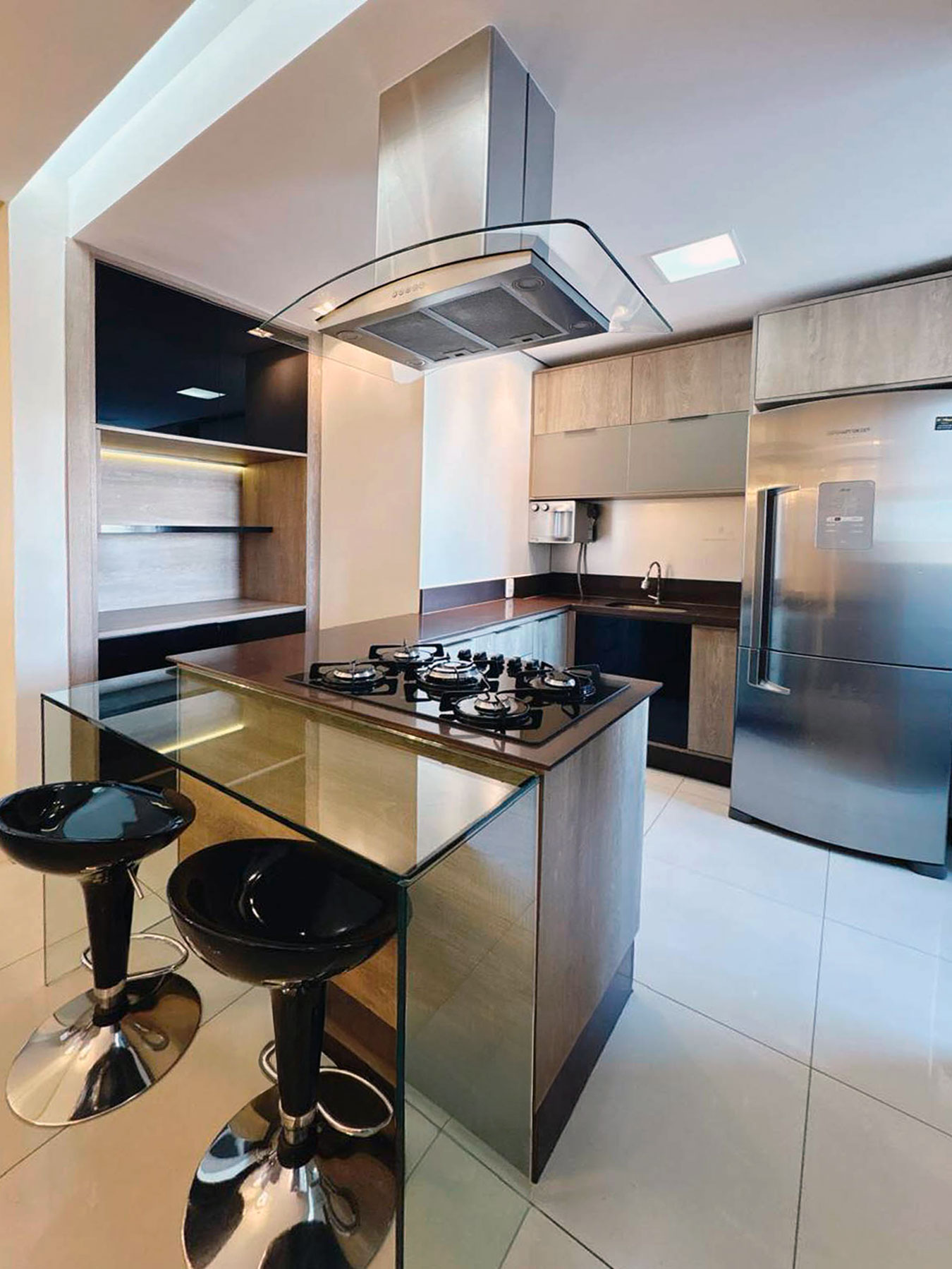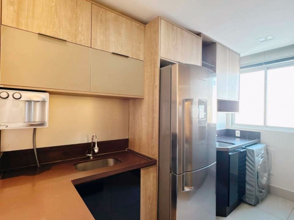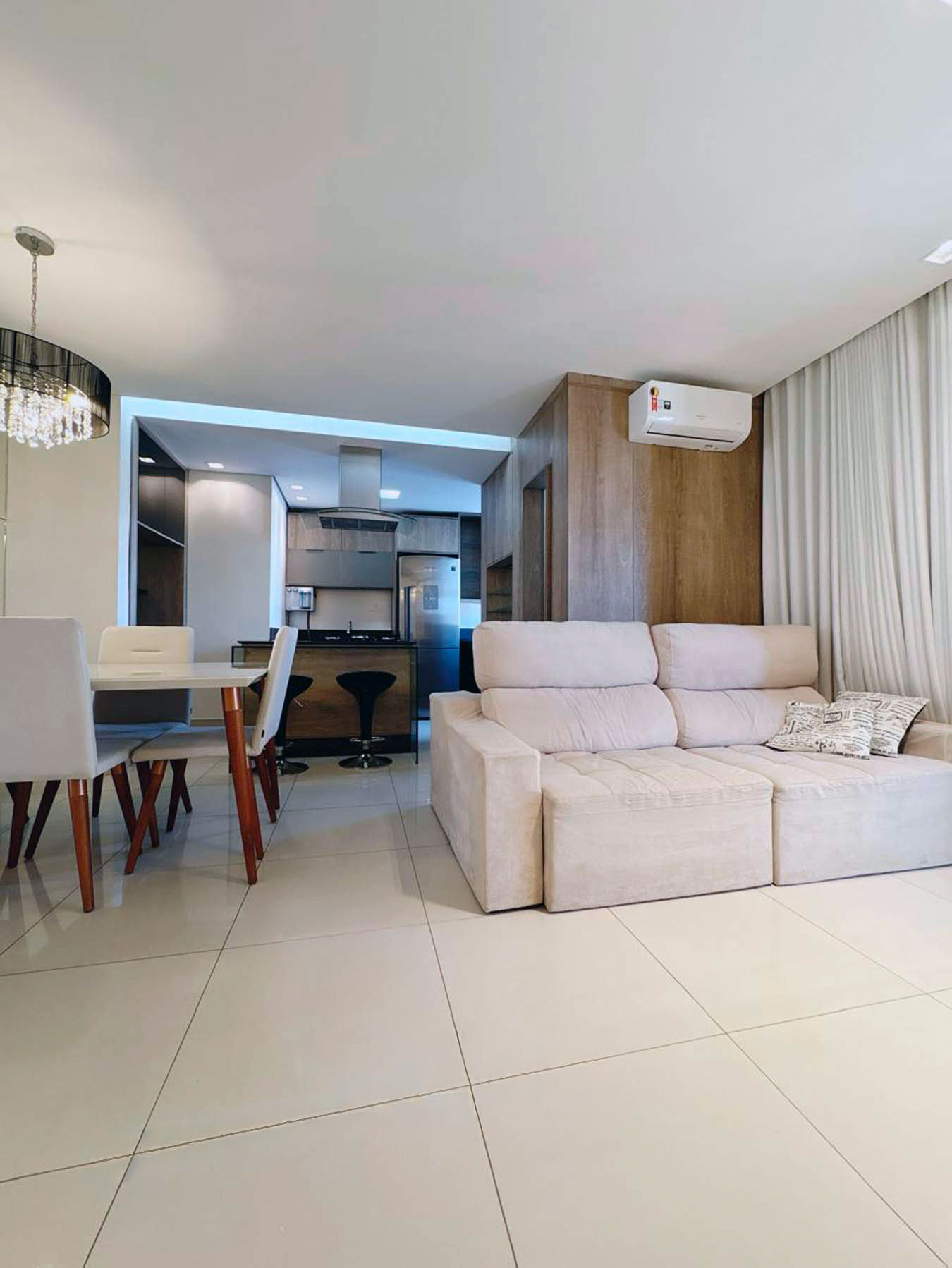 Apartamento mobiliado de 90m² disponível para aluguel no bairro Paquetá. O imóvel conta com três quartos bem distribuídos, uma linda cozinha americana integrada, lavabo e varanda aconchegante.