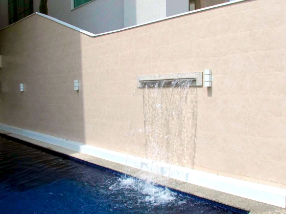 4º andar: Espetacular área de lazer composta de maravilhoso espaço gourmet, sauna com água fria e quente, escritório, banheiro masculino e feminino, ampla casa de máquina com motores individualizados, sendo 1 para água quente, 1 para retro – lavagem e 1 para cascata. jardim, área de lazer com vista panorâmica definitiva que recebe facilmente 70 pessoas com tranquilidade, escritório, entrada lateral para a área de lazer.