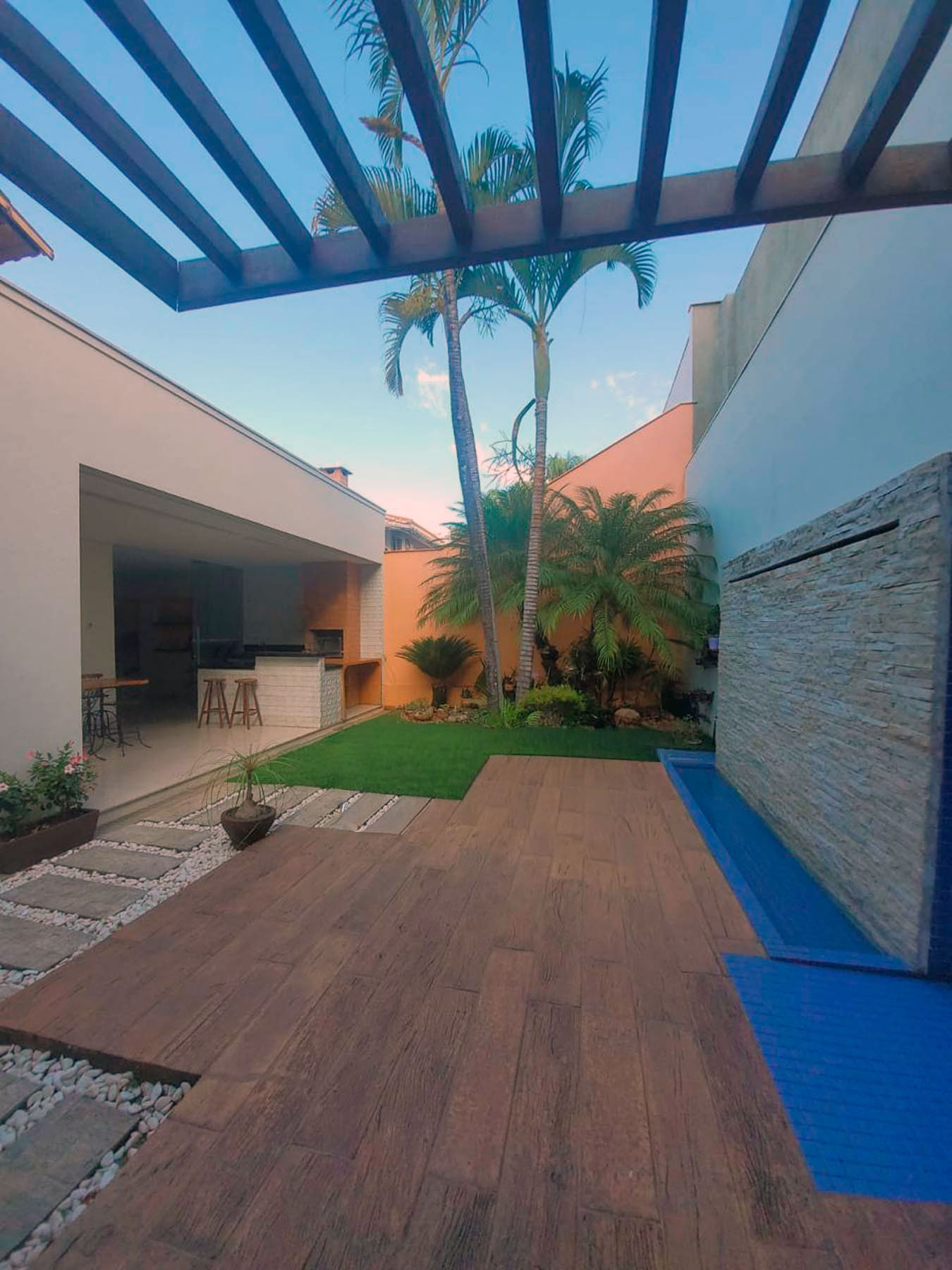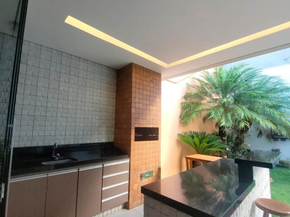 O espaço gourmet é um destaque à parte, ideal para receber amigos e familiares, com bancada em L, cascata, ducha, jardim e dois banheiros externos, além de uma ducha exclusiva para banho. A suíte master proporciona uma experiência única, com closet e um banheiro luxuoso equipado com hidromassagem para duas pessoas.
