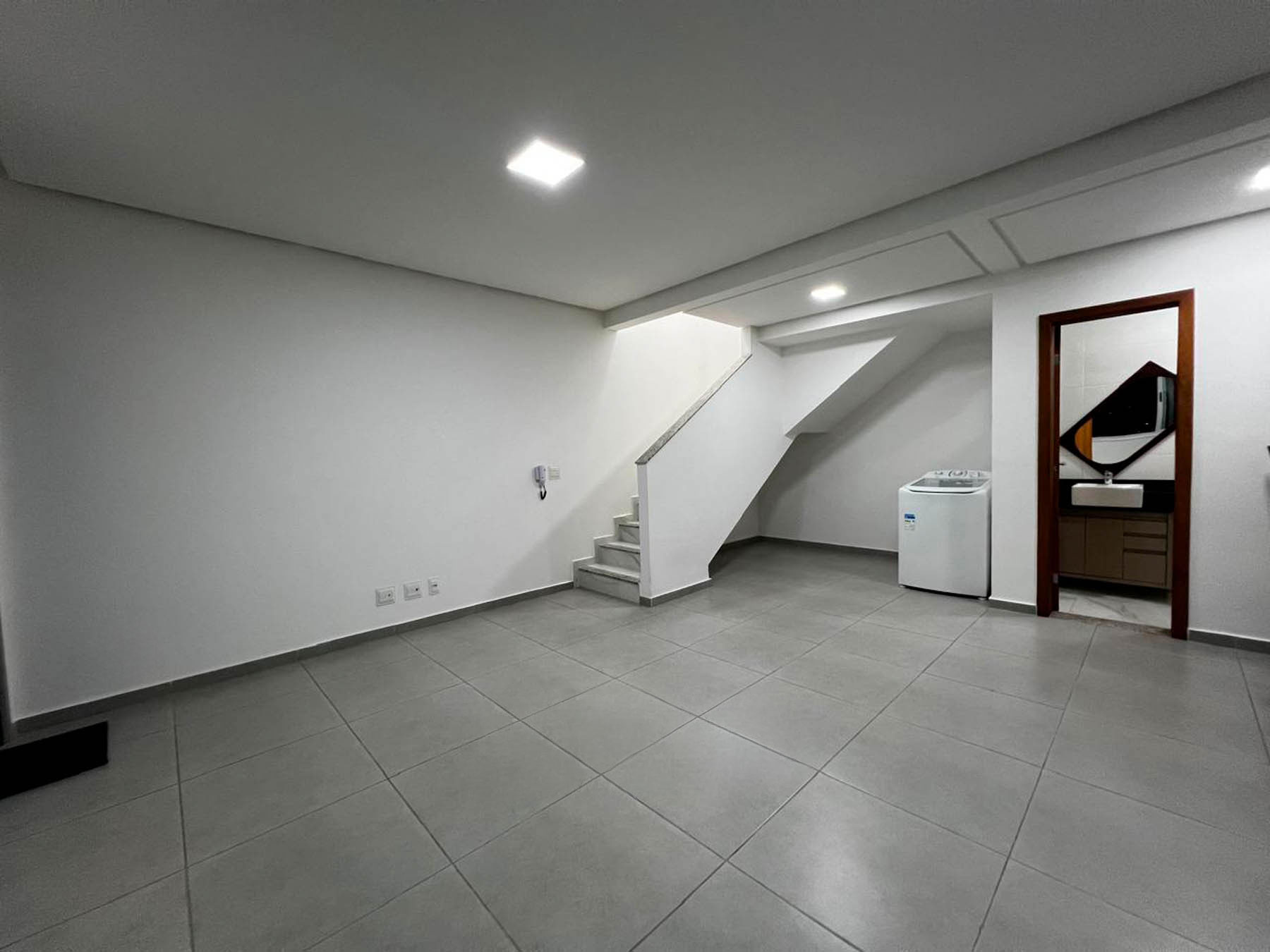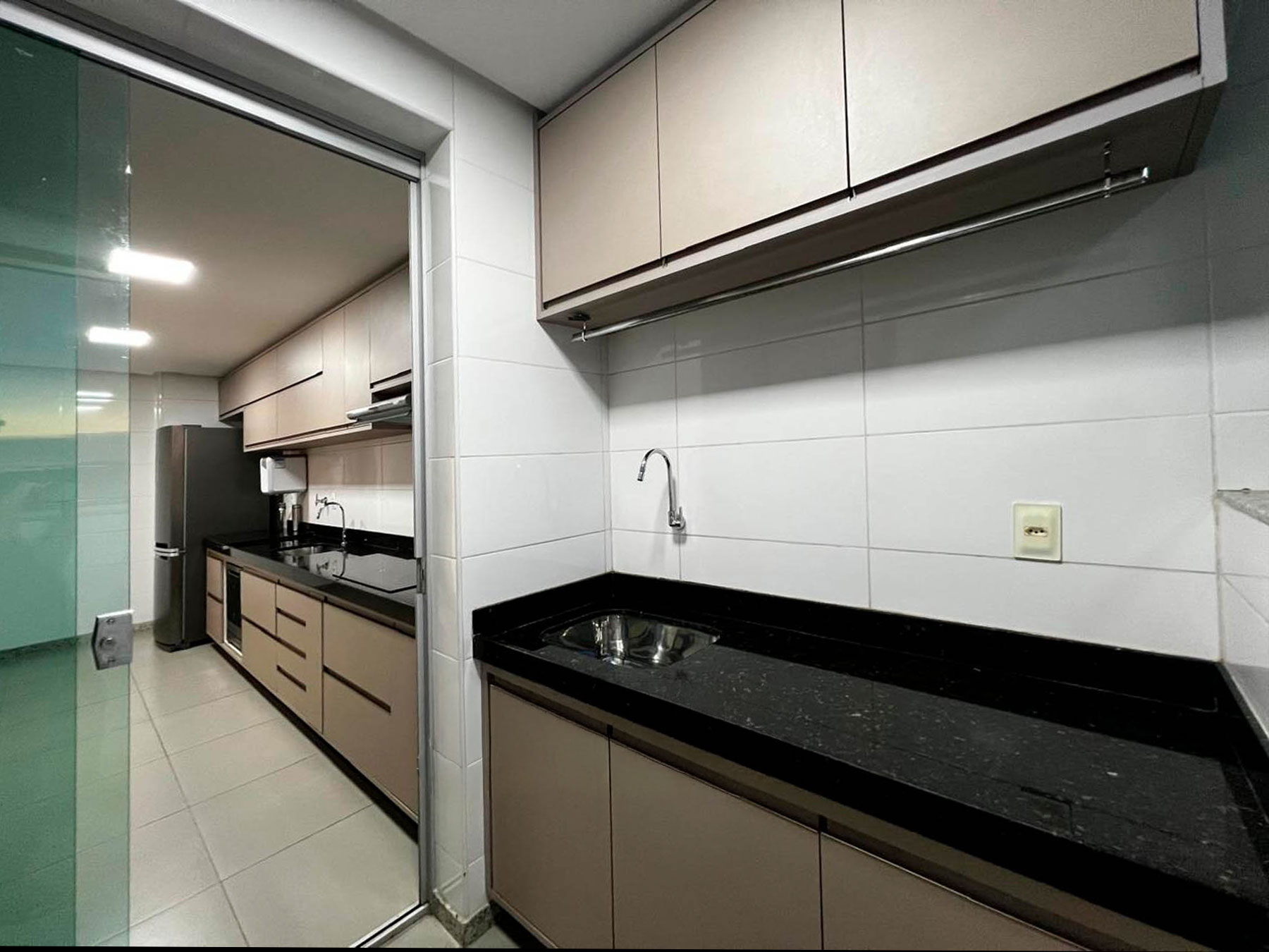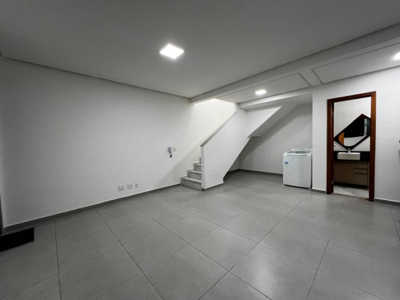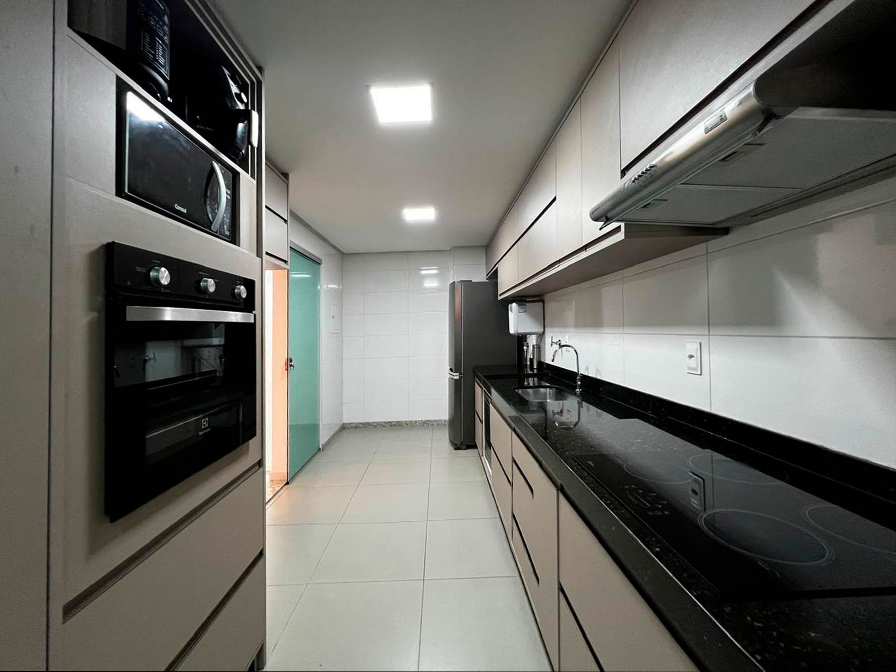 Com três quartos — incluindo uma suíte com closet e varanda — e duas vagas de garagem, o imóvel se destaca pelo excelente padrão de acabamento. No primeiro pavimento, as salas de estar e jantar apresentam piso em porcelanato, teto rebaixado em gesso e armários planejados, além de uma cozinha moderna equipada com fogão de indução, forno elétrico e bancada em granito. A área de serviço também conta com armários e acabamento refinado.